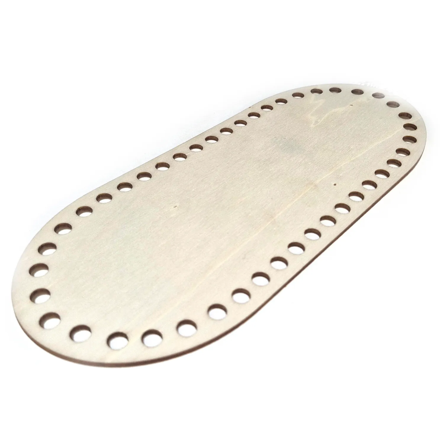 Soveltuu virkkauksessa korinpohjaksi, korinkanneksi tai laukunseinäksi. Käytä sellaisenaan, maalaa, lakkaa, käytä decoupagetekniikkaa jne. 7mm reiät. Vanerin paksuus (2,5-4mm) voi vaihdella toimituserien mukaan.