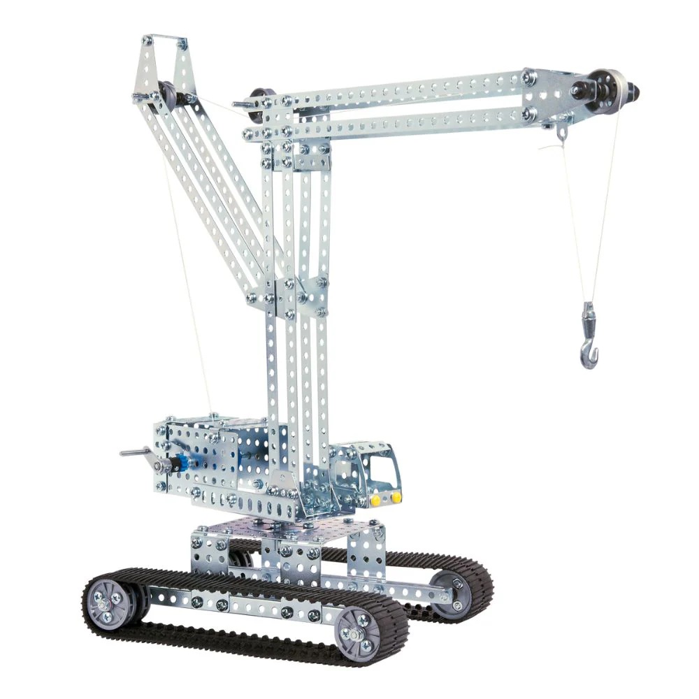 Eitechin metalliset rakennussarjat kootaan M4-standardin mukaisin ruuvein ja mutterein teräksisestä reikälevyistä. Kussakin pakkauksessa on tarvittavat työkalut ja ohjeet useamman mallin rakentamiseen samoista osista. Rakennusohjeet 3 malliin. 520 osaa.