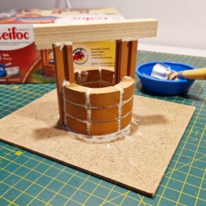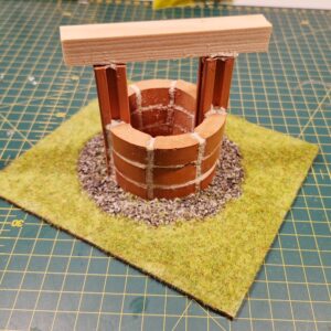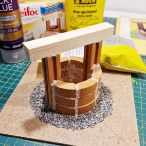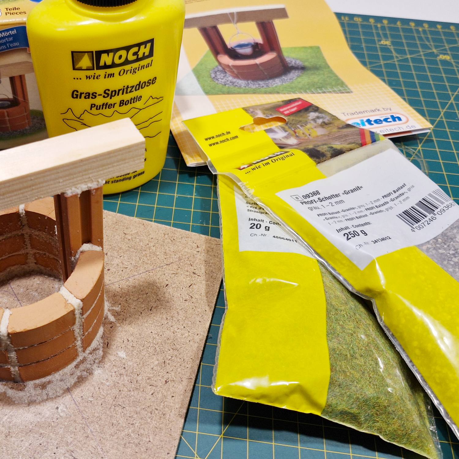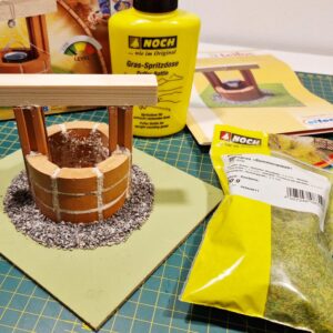 Kaivon maasto rakennettiin käyytämällä Noch kivirouhetta ja ruohosirotetta. Ruoho siroteltiin liiman pintaan Puffer sirotepullon avulla. Puffer pullo tekee ruohosirotteesta sähköstaattisen, jolloin ruohokuidut istuvat liiman päällä pystysuorassa.